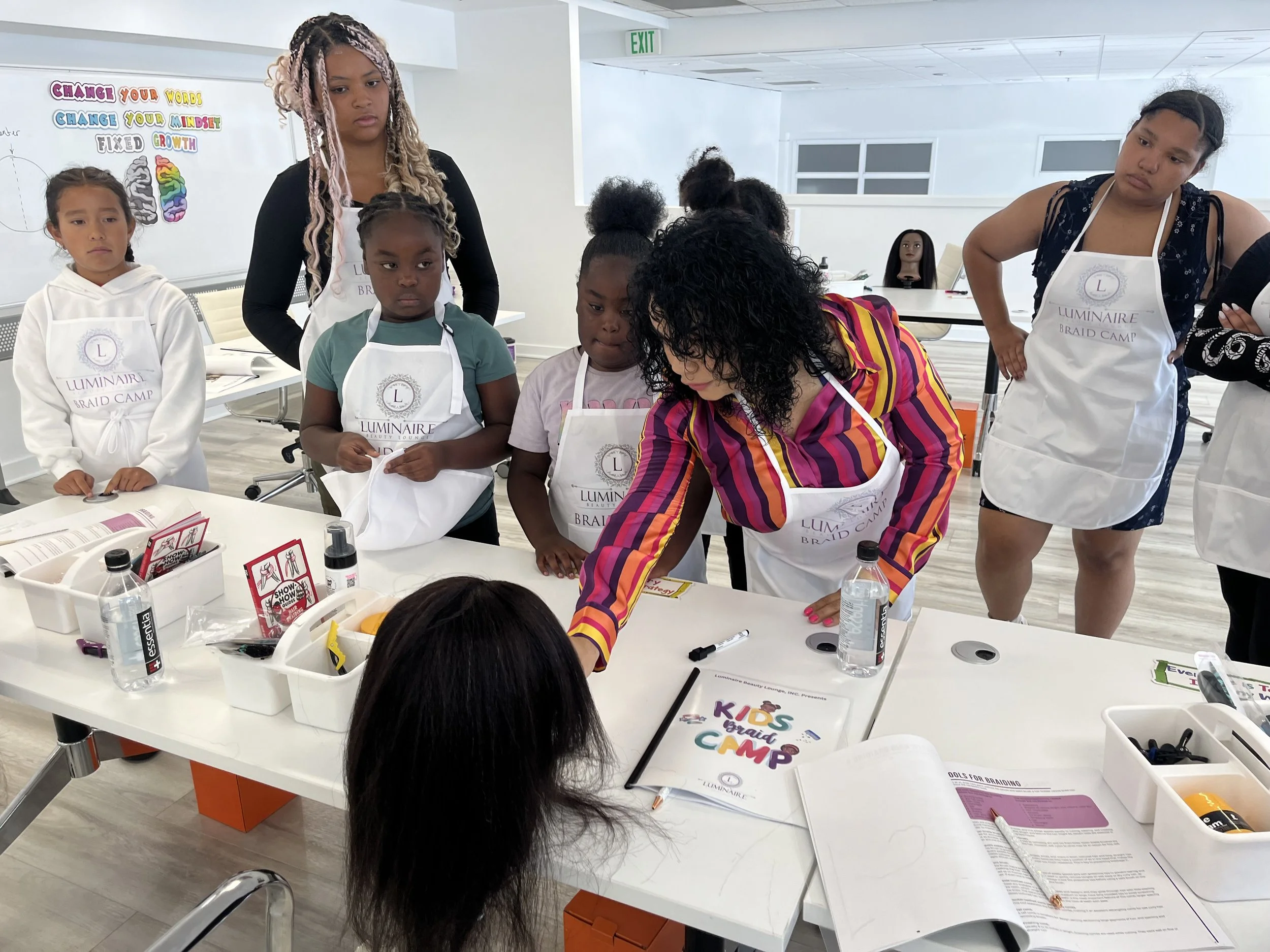 Luminaire Kids Braid Camp! This exciting event is the perfect opportunity to dive into the world of braiding, creativity, and fun. Our camp is designed to teach kids the art of braiding, from basic techniques to more advanced techniques! Whether your child is a beginner or has some braiding experience, our skilled instructors will guide them every step of the way. Here's what we have in store: